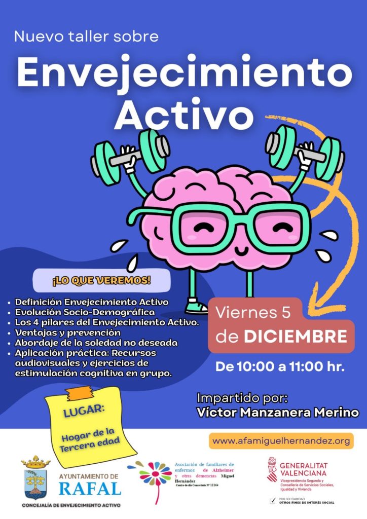 ¡El 5 de diciembre en el Hogar de la Tercera Edad de #Rafal! Disfruta de un Taller de Envejecimiento Activo impartido por Víctor Manzanera Merino 👨🏫, donde se abordarán temas como