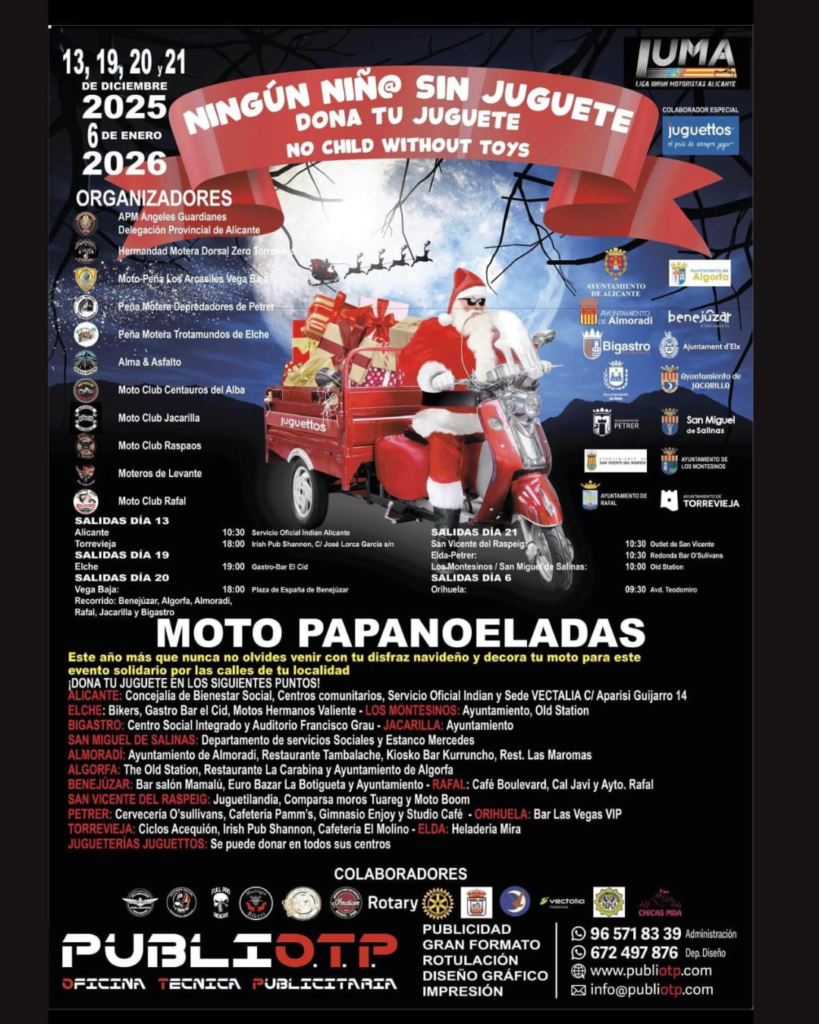 Moto Papanoelada Solidaria “Ningún niño sin juguete” Os recordamos que nuestro municipio se suma por primera vez a este recorrido provincial que llevará ilusión a los niños y niñas que