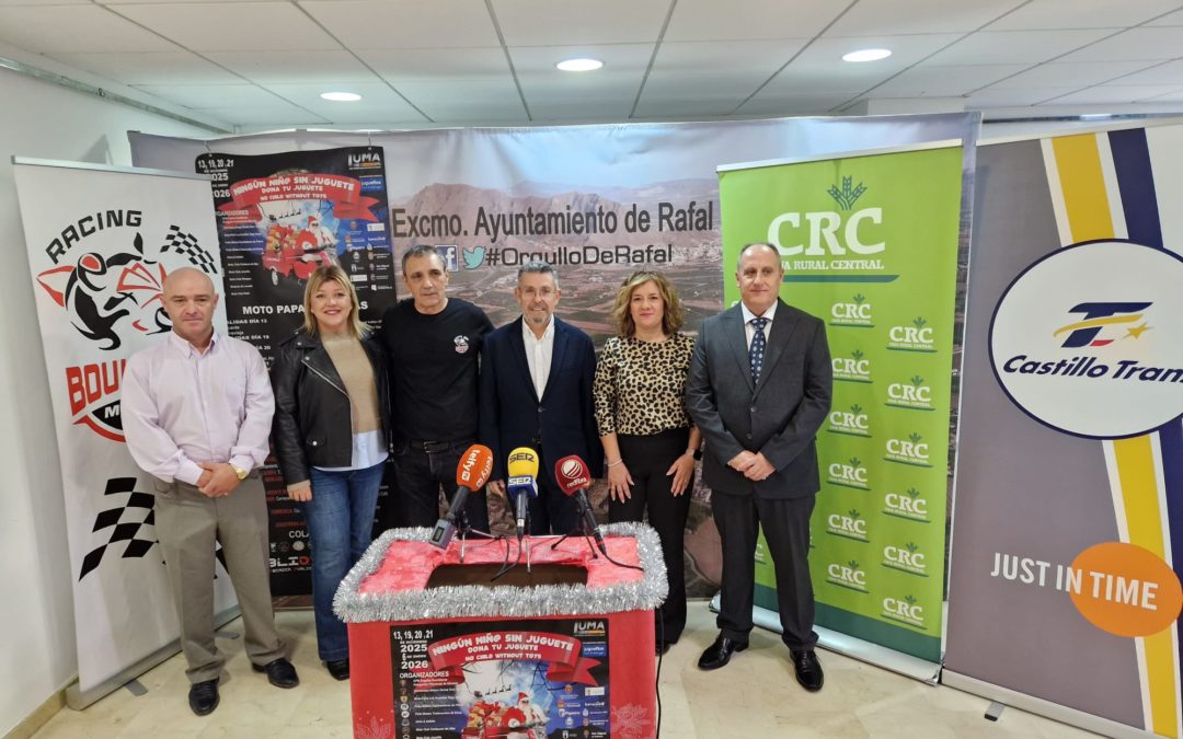 El alcalde de Rafal, Manuel Pineda, acompañado por la concejala de Bienestar Social, Noemí Cutillas, Gloria Romera en representación de la empresa Castillo Trans, Javier Fábregas, director de zona de Caja Rural encargado de la obra social y Antonio Fermín Ferrández, representante de la Liga Unión Motoristas Alicante han presentado hoy esta iniciativa “que une tradición, solidaridad y compromiso con quienes más lo necesitan”, ha afirmado Pineda. El primer edil ha añadido que es un orgullo que Rafal se haya incluido en este recorrido solidario “que va a ayudar a llevar la alegría a muchos niños y niñas y a la que animo a participar a todo el pueblo de Rafal”. Por su parte, la concejala de Bienestar Social ha subrayado que “cada aportación, por pequeña que sea, puede marcar la diferencia en la Navidad de un niño o una niña”. Por esto ha animado a rafaleños y rafaleñas a que “echen un vistazo, porque seguramente en nuestras casas hay muchos juguetes en buen estado con los que ya no jugáis y pueden aprovecharlos otros menores”.