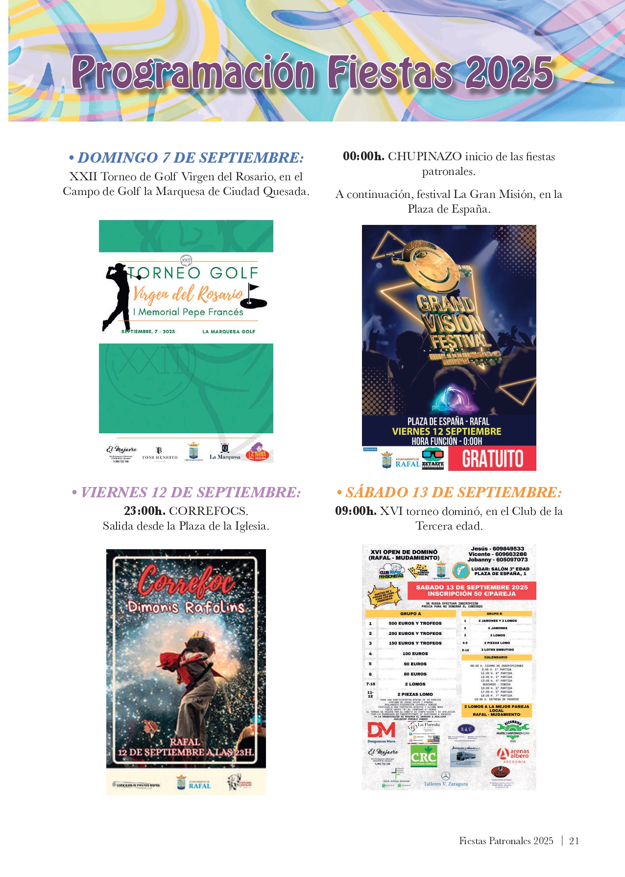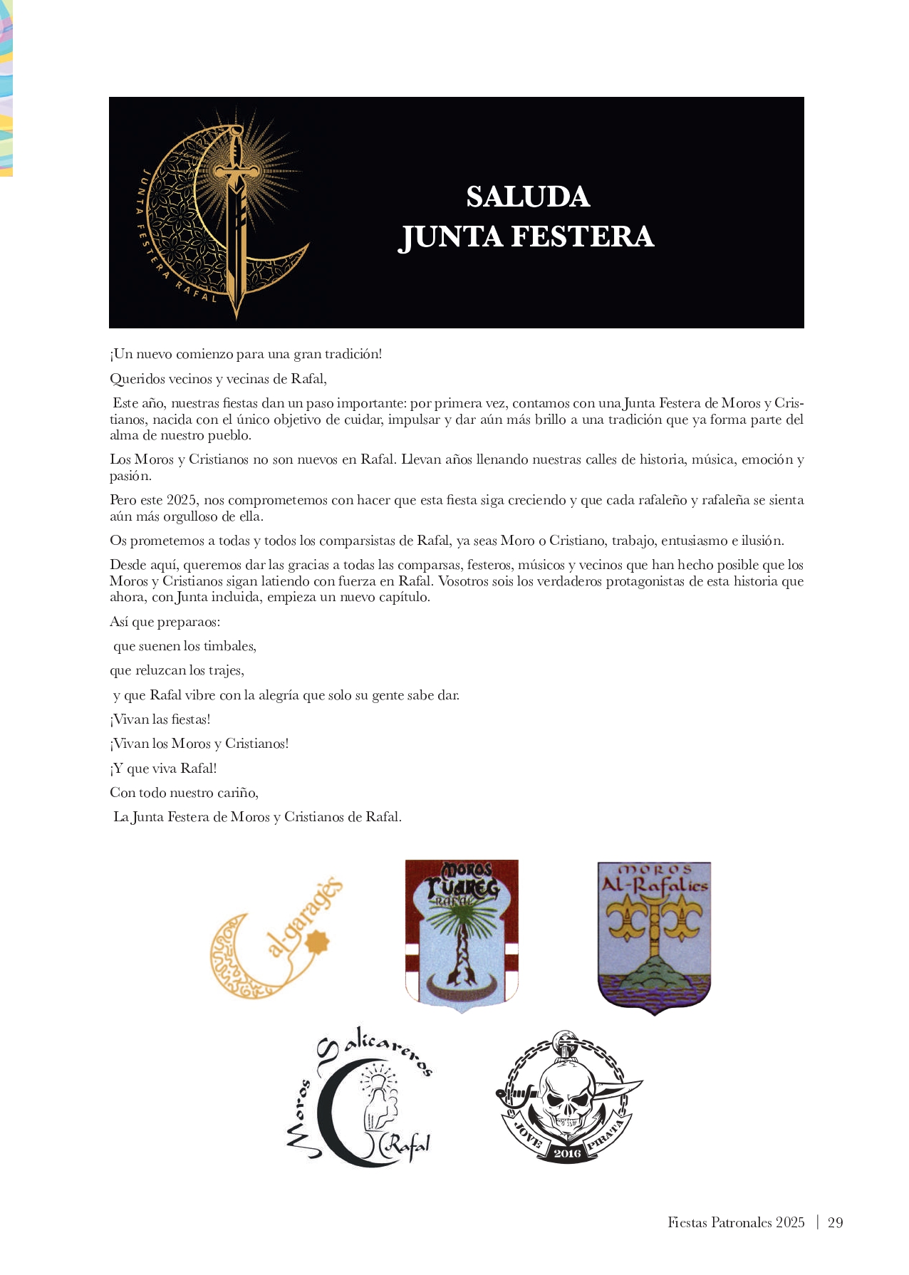 Revista Fiestas Patronales Rafal 2025 por admin | Sep 11, 2025 | Concejalía de Fiestas, Noticias PROGRAMACIÓN